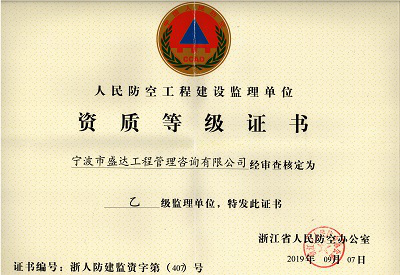 熱烈祝賀我公司順利取得人防工程監(jiān)理乙級(jí)資質(zhì)